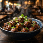Crispy vegetable balls in flavorful Manchurian sauce.